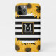 Monogramm Schwarz-weiß gestreifte Sonnenblume Gold Case-Mate iPhone Hülle