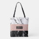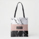 Monogramm Schwarz-weiße Marmor Rose Goldstreifen Tasche