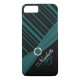Monogramm Schwarz-weißes Aquamarin gestreiftes iPh Case-Mate iPhone Hülle
