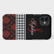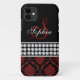 Monogramm-schwarzer roter Damast iPhone 5 Case-Mate iPhone Hülle