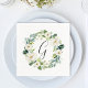 White Floral Wreath Monogram Napkin mit einem Kranz von Aquarellgrün mit weißen Blume. Für eine weiter gehende Anpassung dieses Designs klicken Sie bitte auf den Button "Anpassen". Matching-Elemente sind ebenfalls verfügbar.