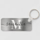 Erstellen Sie Ihren eigenen personalisierten gürtelhaften Namen und mit Monogramm dekorativen, dünnen Rechteck Schlüsselanhänger für sie. Personalisiertes Monogramm mit zeitgenössischer, eleganter Kalligraphie und minimalistisch modernem Stil. Der grafische Hintergrund der Digitalfotografie weist eine silber- und grau-grau-gestufte Folie auf, die wie ein Foto gedruckt wird.