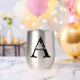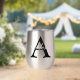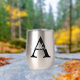 Personalisieren Sie diesen silbermetalischen Thermoweintumbler mit beliebigem Nachnamen und Single maßgeschneidertes Monogramm.