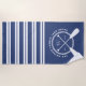 Kleines Strandtuch in Blau und Weiß für Ihr Seehaus. Fügen Sie Ihren Familiennamen, Ihren Anfangsnamen und das Jahr, das festgelegt wurde, zu einem nautischen Monogramm von gekreuzten Paddeln über einem Seilkreis. Das Badetuch ist mit blauen und weißen Streifen versehen.