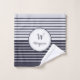 Set für die Navy Monogram Stripes Bath Handtuch. Nautisches Design mit Monogramm im Kreis auf der Marine und hellblauen Streifen. Passen Sie dieses Produkt mit Ihren ersten Zazzle-Tools für die Anpassung an Ihre Bedürfnisse an. Wir laden Sie zu unserem Geschäft, Simon und Grace, für passende Produkte und mehr ein.