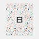 Weißer Hintergrund mit mehrfarbigem Terrazzo-Muster in Rosa, Minze, Beige und Blau. Personalisieren und fügen Sie Ihre Monogramm Initial, Buchstabe.