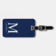 Reisen Sie stilvoll mit diesem monogramm Gepäckanhänger mit einem Serif-Monogramm und Ihrem Namen in einem Kalligraphieskript auf der Vorderseite. Die Hintergrundfarbe auf der Vorder- und Rückseite kann bearbeitet werden. Klicken Sie auf Anpassen, um die Farbe durch Ersetzen des Platzhaltertextes zu ändern. Für weitere Optionen, wie zum Beispiel den Schriftart zu ändern und ihn zu vergrößern oder zu verändern, klicken Sie auf den Button "Anpassen". *Bitte beachten Sie, dass das Zazzle-Wasserzeichen, das in der Zoomvorschau angezeigt wird, nicht auf dem gedruckten Endprodukt angezeigt wird. ©Rosewood und Citrus