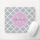 Ein gemustertes Mousepad mit einem gürtelgrauen Quarrefolienmousepad mit einem geschmiedeten Abzeichen in einem rosa Lavendel, das Sie personalisieren können, indem Sie Ihren Namen und mit Monogramm erste zu. Dies ist Teil der Harbour Mist Gray und Lavender Pink Spring Collection.