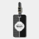 Ein modernes, schwarz-weißes Gepäckanhänger mit einem Hahnentrittmuster in senkrechten Streifen. Dieses zeitgenössische Design in stylischen Grautönen personalisieren, indem man den Namen und die Monogramm-Initialen der modischen jungen Frau hinzufügt.