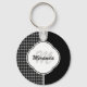 Ein moderner Schwarz-Weiß-Schlüsselanhänger mit einem Hahnentrittmuster in senkrechten Streifen. Dieses zeitgenössische Design in stylischen Grautönen personalisieren, indem man den Namen und die Monogramm-Initialen der modischen jungen Frau hinzufügt.