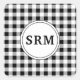 Monogramm, Weißes Buffalo-Karo-Muster 1.5-in Quadratischer Aufkleber