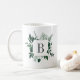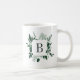 Elegante botanische Monogramm-Tasse zeigt Ihren Single Initial Monogramm umgeben von üppigen Aquarellfarben-Blätter und Winterfolien in üppigen Jägertönen und Waldgrün.