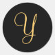Monogramm Y, goldfarbene Anfangsfarbe Y auf schwar Runder Aufkleber