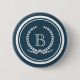 Monogramm-Design mit Laurel-Kranz-Dekoration in gestreifter, runder Form auf blauem Hintergrund