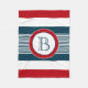 Nautisches Design mit Monogramm-Dekoration in runder Form auf blau, weiß und rot gestreiftem Hintergrund