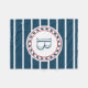 Nautisches Design mit Monogramm-Dekoration in runder Form auf blau-weiß gestreiftem Hintergrund