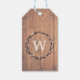 Monogramm-Design für Weihnachten mit Kranz- und Schneedekoration auf rustikalem Holzboden