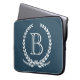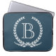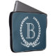 Monogramm-Design mit Lorbeerkraendekoration auf blauem Hintergrund