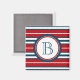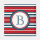 Nautisches Design mit Monogramm-Dekoration in runder Form mit Seilabbildungen auf blau, rot und weiß gestreiftem Hintergrund