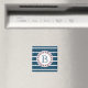 Nautisches Design mit Monogramm-Dekoration in runder Form auf blau-weiß gestreiftem Hintergrund