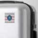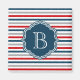 Nautisches Design mit Monogramm-Dekoration auf blau, weiß, rot und grau gestreiftem Hintergrund