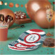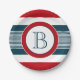 Nautisches Design mit Monogramm-Dekoration in runder Form auf blau, weiß und rot gestreiftem Hintergrund