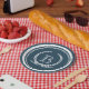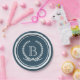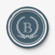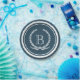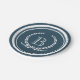 Monogramm-Design mit Laurel-Kranz-Dekoration in gestreifter, runder Form auf blauem Hintergrund