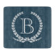Monogramm-Design mit Lorbeerkraendekoration auf blauem Hintergrund