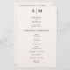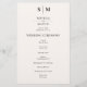 Faites de votre mariage une journée inoubliable avec cette carte de programme de mariage élégante. En haut, présentez le monogramme du couple, ajoutant une touche personnelle et raffinée. Ci-dessous, l'itinéraire de la cérémonie est présenté dans une police serif magnifiquement conçue, guidant vos invités à travers chaque moment spécial. Au dos, honorez les membres de votre mariage et incluez un message de remerciement sincère pour exprimer votre reconnaissance. Idéal pour les mariages élégants, cette carte programme ajoute une touche de luxe à votre célébration.