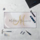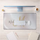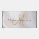 Personnalisez cet élégant monogramme d'or initial et de script noir sur un tapis de bureau d'arrière - plan de perle irisé.