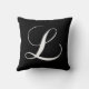 Monogramme blanc noir L coussin. Cette police élégante de remous transforme votre initiale de monogramme en coussin décoré d'un monogramme élégant de concepteur. Grand pour votre chambre à coucher, chaise préférée, comme décor d'amusement dans votre chambre familiale ou addition décorative formelle à votre salon. Personnaliser avec votre couleur d'arrière - plan. Pour d'autres lettres de l'alphabet entrez en contact avec svp MONOGRAMGALLERY. Elke Clarke©