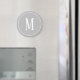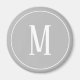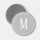 Un aimant rond avec un monogramme blanc sur un arrière - plan gris. Customisez l'aimant avec vos initiales ou initiales, couleurs, entre autres options.