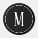 Un aimant rond avec un monogramme blanc sur un arrière - plan noir. Customisez l'aimant avec vos initiales ou initiales, couleurs, entre autres options.