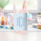Un simple monogramme de trois lettres bleu clair et de fleurs de maïs sur un verre à boîte. Changez la police et la couleur arrière - plan si vous préférez les couleurs vives cool ! Créez votre propre cadeau monogrammé pour les nouveaux mariés.