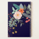 Un vaporisateur coloré de fleurs botaniques graphiques ornent cette couverture de planificateur et il peut être personnalisé avec trois initiales monogrammes. L'arrière - plan est un bleu marine riche.