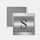 Cadre 3d en métal brillant brossé et argenté avec vis dans un arrière - plan de surface solide et chrome. Personnalisez facilement en ajoutant un monogramme, une initiale ou un nom. Montré est la lettre S. Une grande plaque magnétique pour les prix, médailles, etc. Notez que ce design réaliste est un design imprimé, pas vraiment métallique.