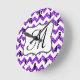Parties scintillant violet moderne Chevron Zig Zag Tissu de bande Imprimer Motif Monogramme initial Horloge murale personnalisée