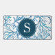 Ce tapis de bureau abstrait a été conçu en utilisant mon aquarelle originale corail de mer dans les tons bleu sur un arrière - plan blanc. Customisez avec votre monogramme initial en blanc sur bleu marine. Ou ajoutez votre logo. Une idée de décoration de bureau unique pour votre bureau à domicile sur le thème côtier et votre petite entreprise.