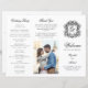 Ces programmes de mariage triplés sont présentés comme une feuille de papier à plier manuellement. L'élégante crête monographique a les initiales de la mariée et du marié en caractères de script fantaisie sur le devant. Les programmes sont parfaits pour de longues cérémonies, avec l'ordre des cérémonies sur les trois volets intérieurs. L'extérieur a la fête de mariage, merci note, et une photo du couple heureux.