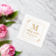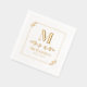 Serviettes de cocktail monogrammes avec cadre de verdure élégant et séparateur de verdure estampillé en feuille d'or. Wouah vos invités à votre prochain dîner ou soirée cocktail avec ces serviettes personnalisées en feuille d'or.