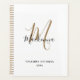Monogramme d'or noir moderne Initiale Nom de script planificateur. Personnalisez cette élégante conception de carnet de planificateur blanc monogrammé avec votre nom et monogramme initial dans une typographie chic, tendance et girly script. Un cadeau parfait pour elle.