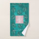 Turquoise palmier feuille tropical hawaïen motif avec aloha script sur un arrière - plan vert océan vibrant faisant un élégant élégant ensemble tendance serviette de bain d'été. ++++++++++++++++++ Personnalisez-le avec vos initiales de nom de monogramme de script.