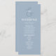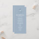Simple, contemporaine, programme de mariage bleu poussiéreux minimal avec calligraphie moderne et élégante et tendance.