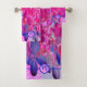 Cet ensemble de serviettes de bain Floral Monogrammé personnalisées est doté d'une élégante Hydrangée Fuchsia et bleu foncé Limelight avec des accents Magenta, violet et rose chaud. Le résultat est un beau tableau fleuri coloré, moderne et magnifique que vous adorerez !