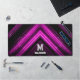 Monogramme Personnalisez avec votre initiale et votre nom personnalisés. Élégant faux cadeaux pétillants pour dames. Tapis de bureau cool unique pour bureau, chambre, travail, grotte pour homme, atelier, salle de jeux.. Abstrait brillant métallique noir et rose chaud galaxie galaxie rayures lignes design numérique. Faux scintille !