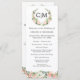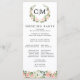 Les initiales du couple mariage sont placées à l'intérieur d'une couronne ouverte en haut de ce programme de mariage. Des fleurs roses et blanches créent une belle couronne et une bordure inférieure. Ce programme de mariage fait partie de la collection de Mariages floraux blancs et roses.