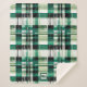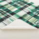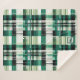 Cette couverture présente un design plaid audacieux et moderne avec des couches superposées de tons vert, noir, blanc et turquoise clair. La motif associe lignes fines et épaisses, ce qui lui confère un aspect contemporain et géométrique. Le monogramme en bas ajoute une touche personnalisée, avec les initiales affichées dans une police épurée et minimaliste à l'intérieur d'un carré bordé. Ce monogramme peut être customisé avec n'importe quel ensemble d'initiales, ce qui en fait un cadeau ou un décor polyvalent et élégant. L'intérieur, feutré, ajoute chaleur et douceur, idéal pour se détendre par temps froid.