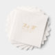 lévez votre fête avec un style intemporel. Ces serviettes mariages estampillées en feuille présentent une paire d’initiales serif classiques, jumelées aux noms complets du couple et à la date du mariage, dans un agencement formel et magnifiquement équilibré. Parfait pour les mariages traditionnels, les réceptions en cravate noire ou les dîners de répétition élégants, ce design ajoute raffinement et sens à votre événement. Disponible en feuille or, argent ou or rose sur des serviettes de cocktail blanches ou écru, c'est un détail sophistiqué que les clients pourront admirer et se souvenir. Une expression gracieuse de l'amour et de l'héritage.