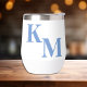 Ce verre à vin a juste votre monogramme de deux lettres en grandes lettres bleues de maïs. Il n'y aura pas à se tromper à qui appartient ce beau verre ! Moderne, élégant et tendance.