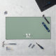 Nom Initial Personnalisé Monogram Sage Green Desk Mat. Ajoutez une touche personnelle et élégante à votre espace de travail avec ce tapis de bureau personnalisé, parfait comme un accessoire de bureau ou un tapis de souris surdimensionné. Le design comprend un arrière - plan vert sage doux avec un nom de script blanc initial et noir placé au centre inférieur. Vous pouvez déplacer le monogramme n'importe où si vous souhaitez utiliser les outils de conception pour adapter votre disposition personnelle. Toutes les couleurs, y compris l'arrière - plan et les polices de caractères, peuvent être customisées selon votre style ou votre décor de bureau. Un cadeau soigné pour les anniversaires, la fête des mères ou toute occasion spéciale, ce tapis simple et élégant ajoute une touche polie et personnalisée à tout espace.